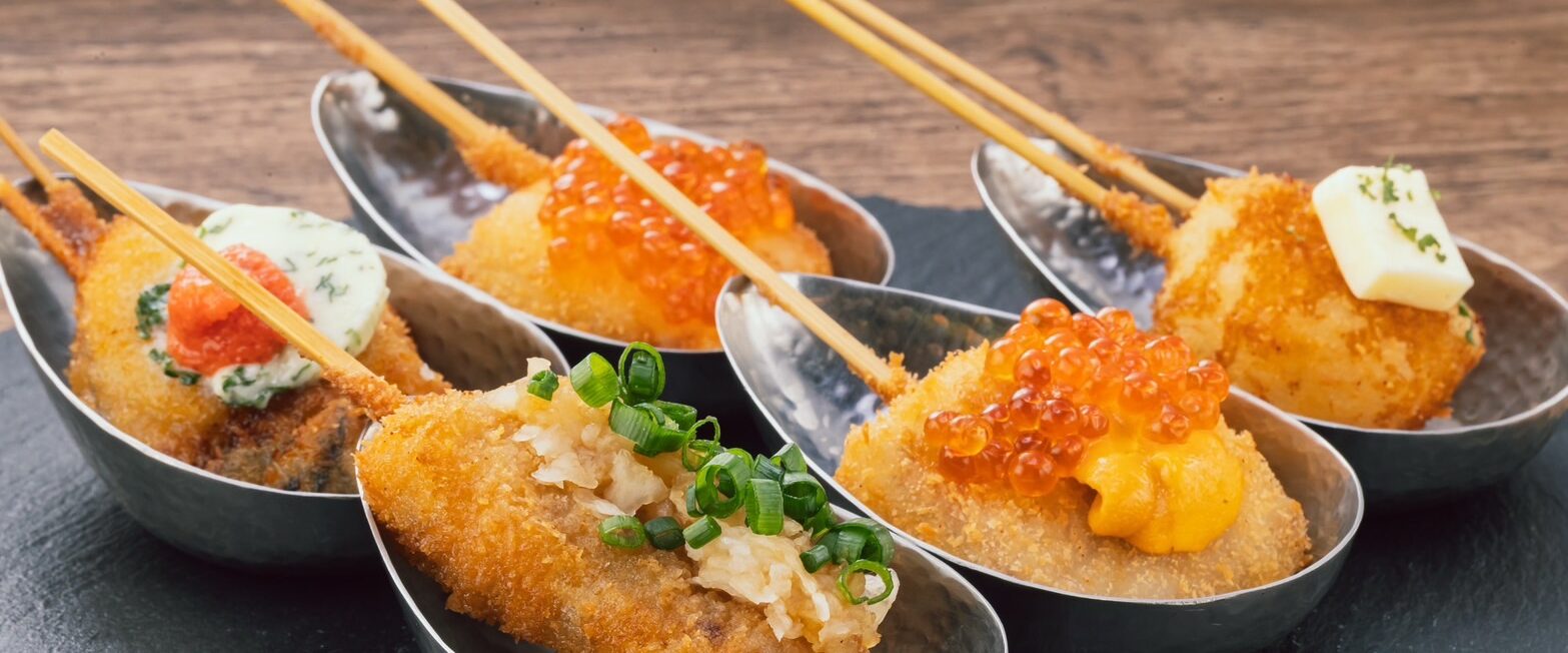 極みの串カツ専門店「串カツあらた」は、大塚フーズが飲食事業で培ったノウハウを元に、”あらたな挑戦”という意味を込め、『串カツあらた』という名で、大阪の下町の味、串カツをお客様へお届けしています。
